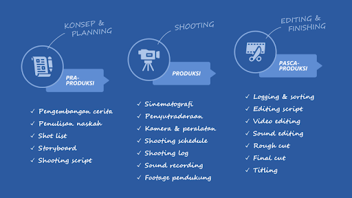 Produksi video secara umum terbagi ke dalam tiga tahapan besar: pra-produksi, produksi, dan pasca-produksi. Pemahaman yang baik terhadap ketiga tahapan ini akan sangat menentukan kualitas hasil akhir video.